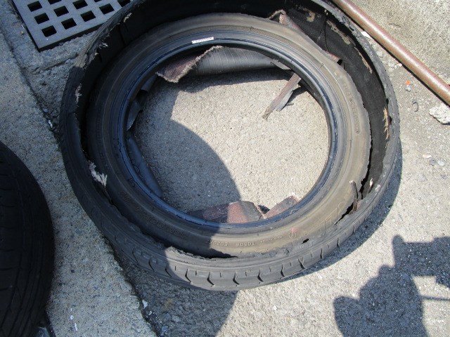 うわっ・・・・タイヤが大変なことに。