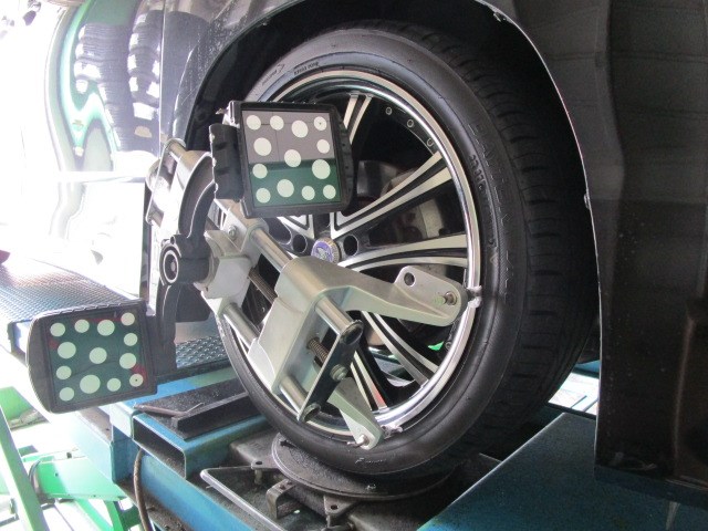 ヴェルファイアでタイヤ交換&アライメントを実施しました。