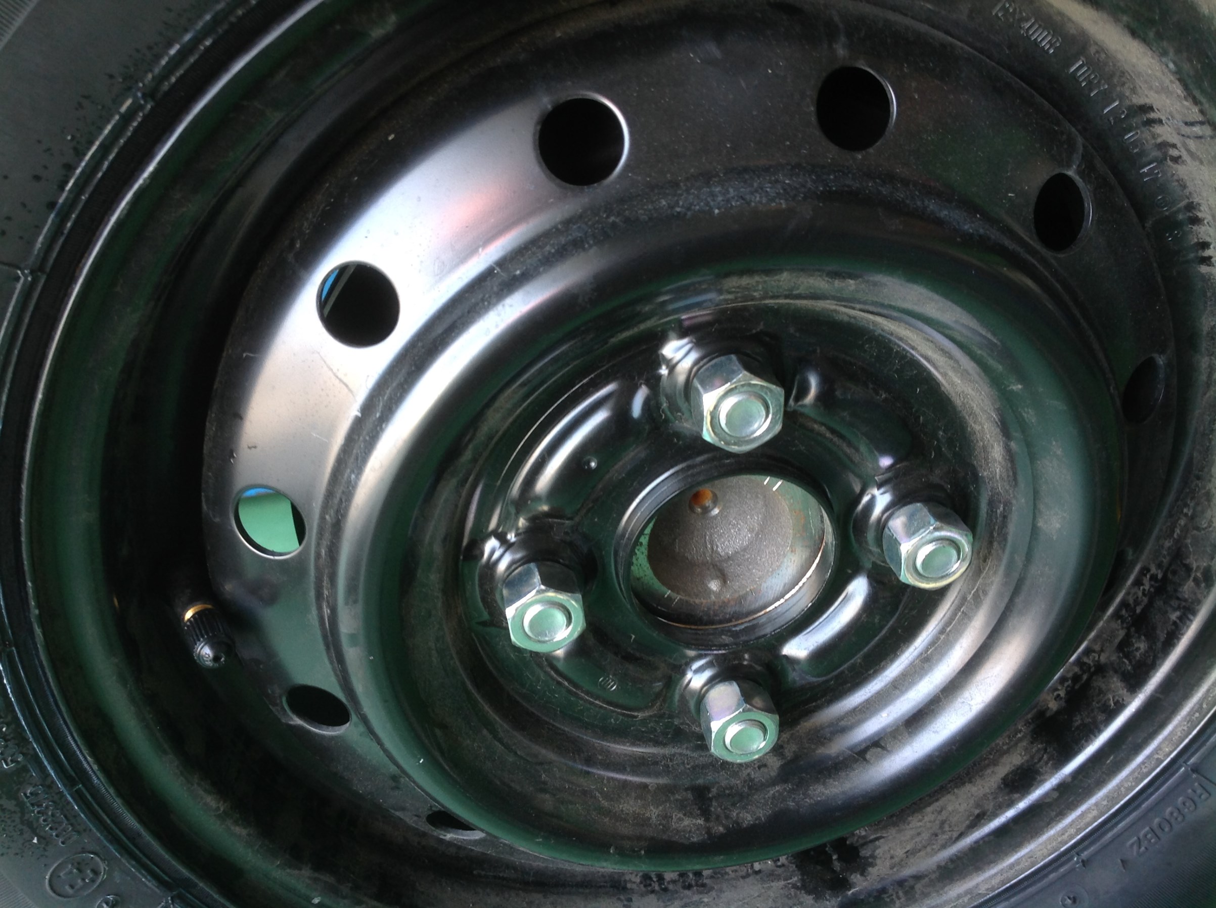 スペアタイヤを頑張って装着して当店まで自走してこられました。