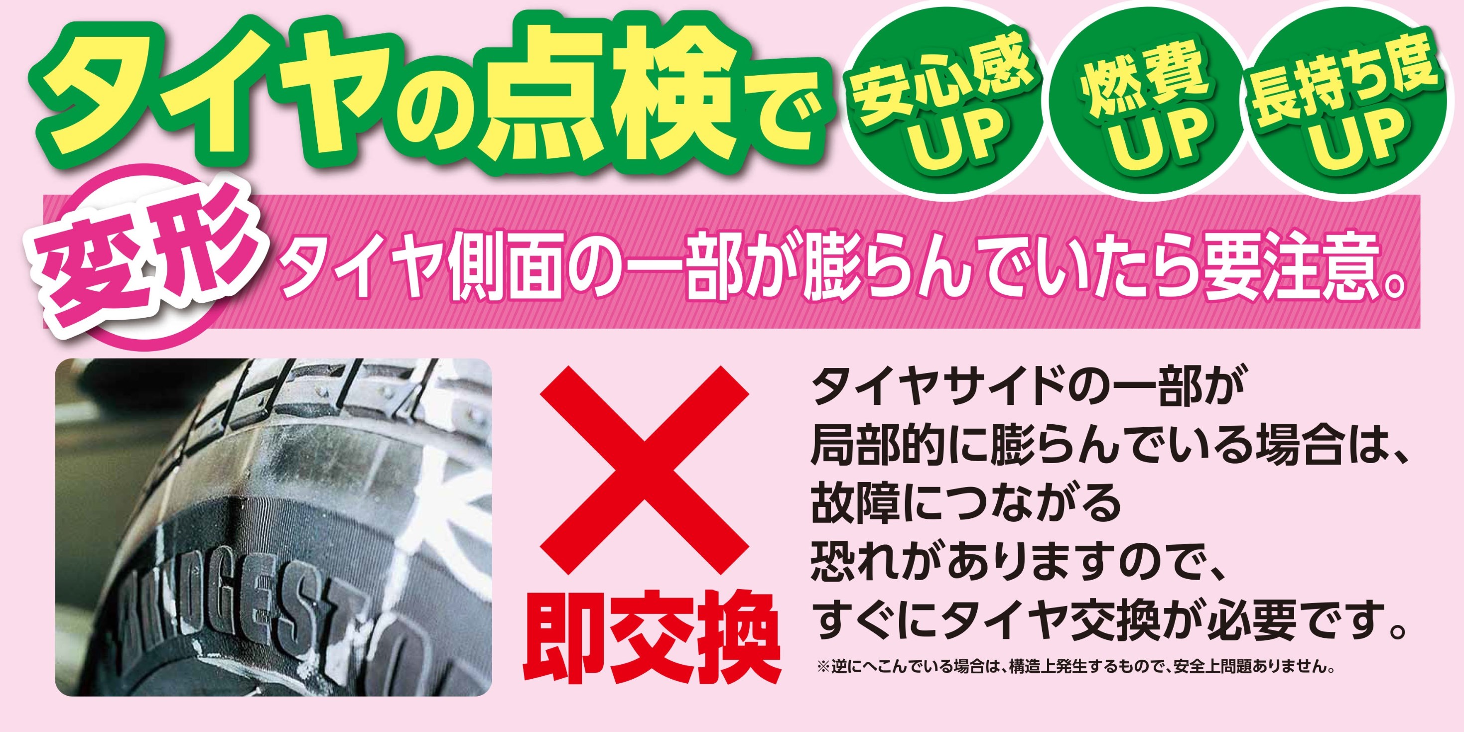 などの原因で思わぬタイヤの故障に繋がることがあります。