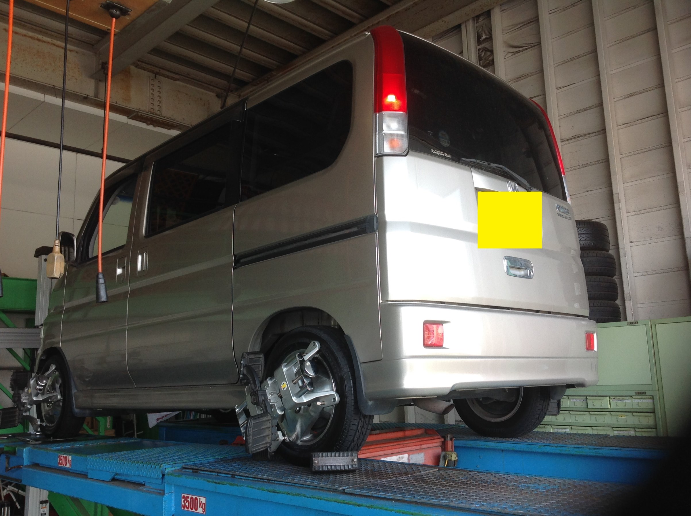 朝一番にご予約頂いた『ホンダ バモス』のアライメント施工です!