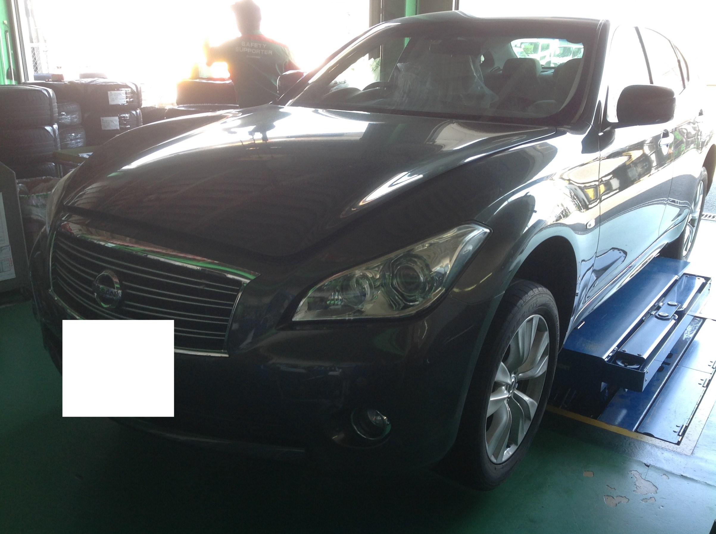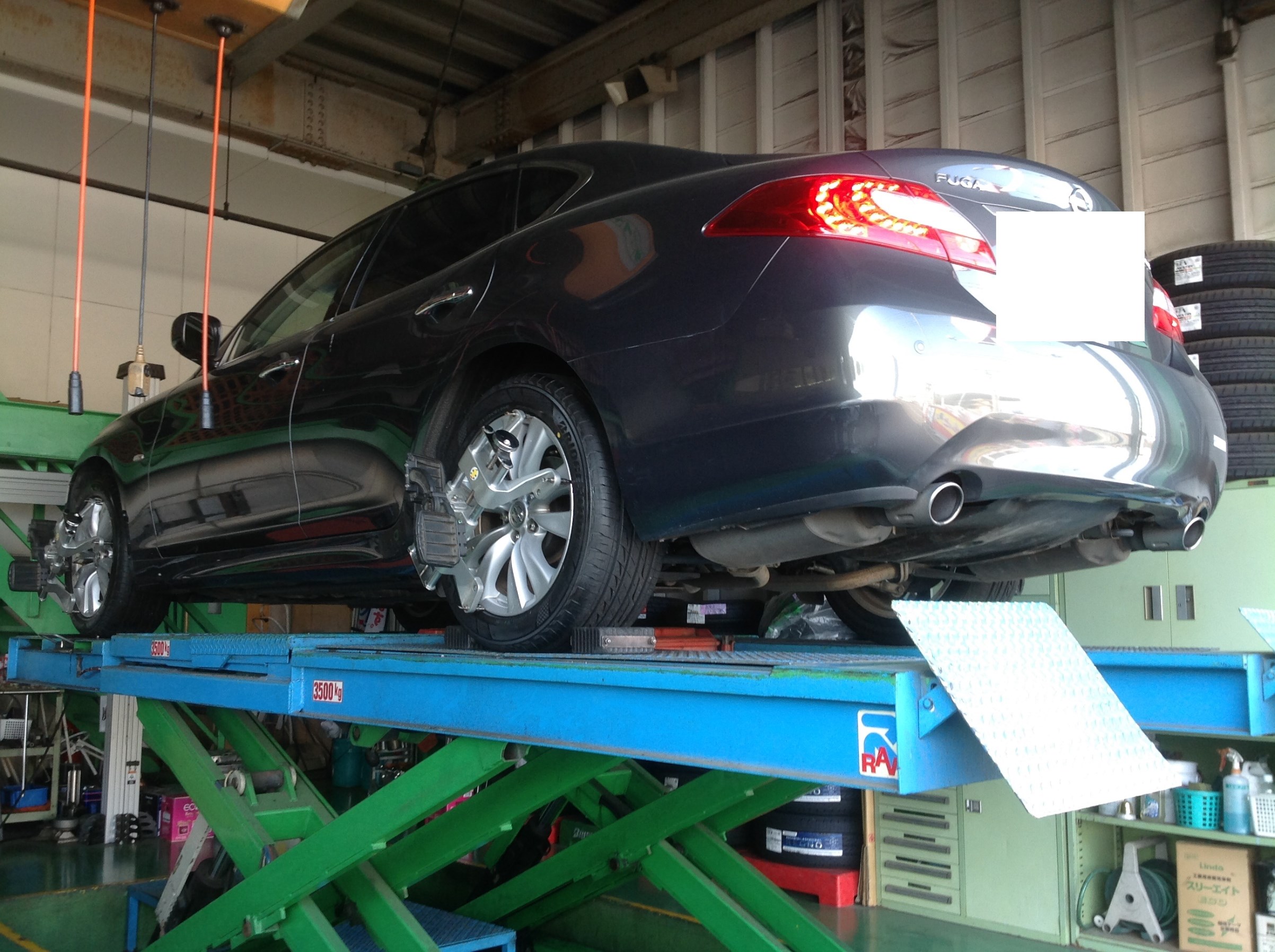 “日産 フ-ガ+タイヤ交換+アライメント施工”