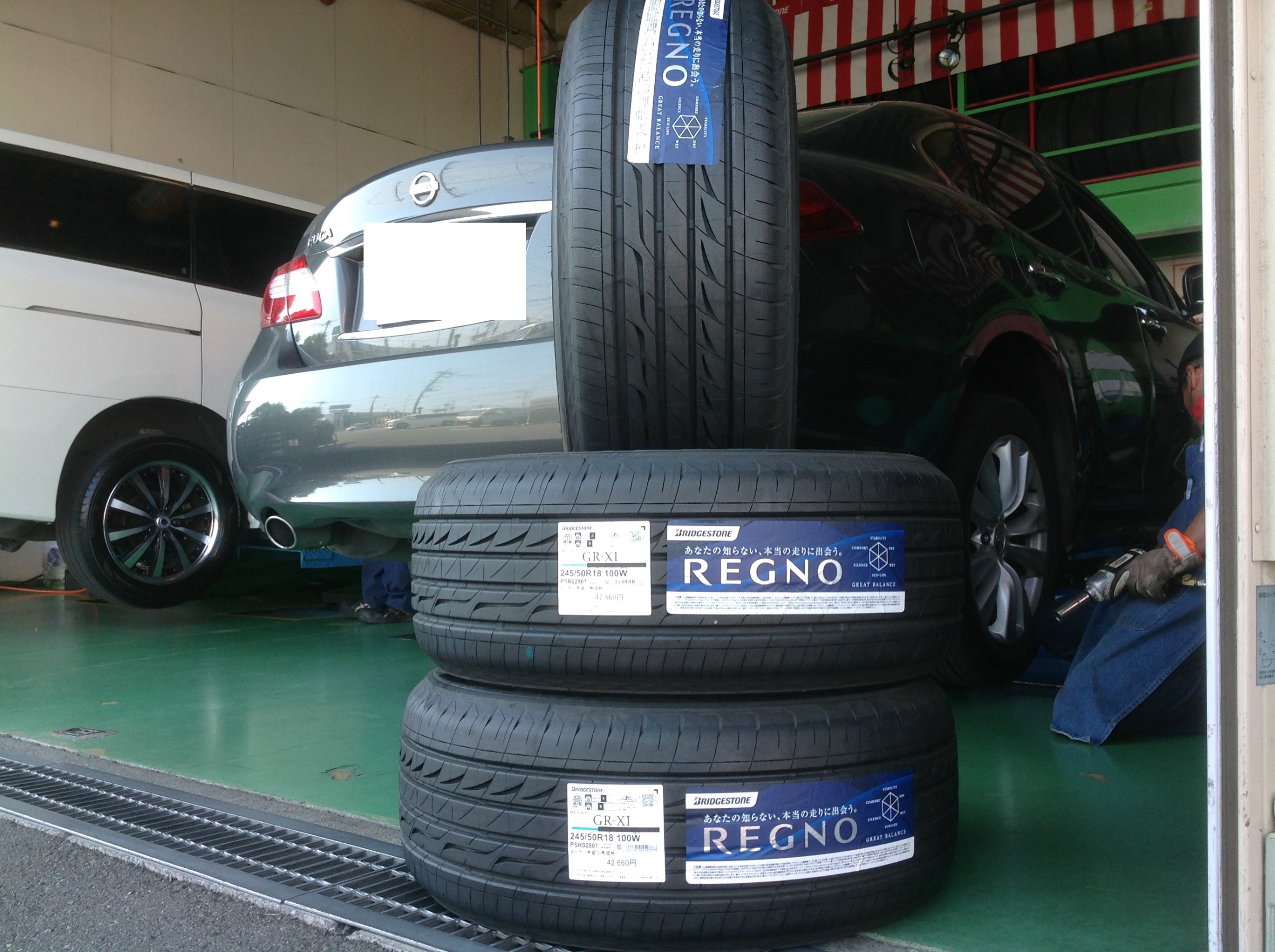 ※日産 フーガ タイヤ交換 ブリヂストン レグノ GR-XI 245/50R18 高級車 トータルバランス