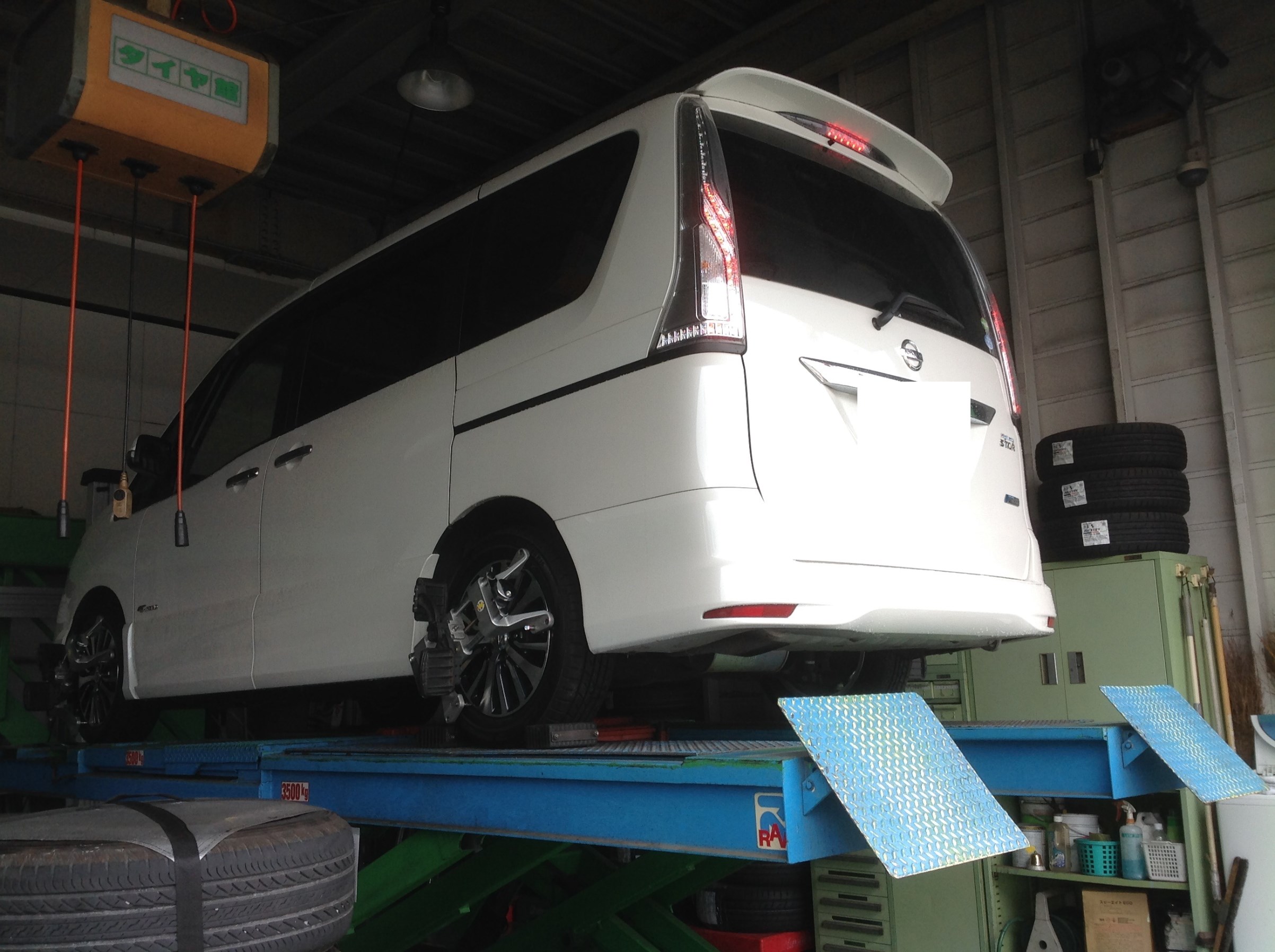 ※日産 セレナ ミニバン タイヤ交換 アライメント施工 車の骨盤矯正 ブリヂストン プレイズPX-RV195/60R16