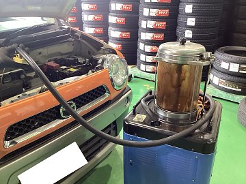 皆さん、こんにちは(^o^)丿 今回はマツダ・FLAIRのオイル交換を実施しました!! 管を通してオイルを吸い上げていく『上抜き』という方法でオイル交換していきます!! レベルゲージでオイルの量を確認後、マシンを使って抜いていきます。 吸い出したオイルの写真です。 ドロドロとして茶色く変色してい...