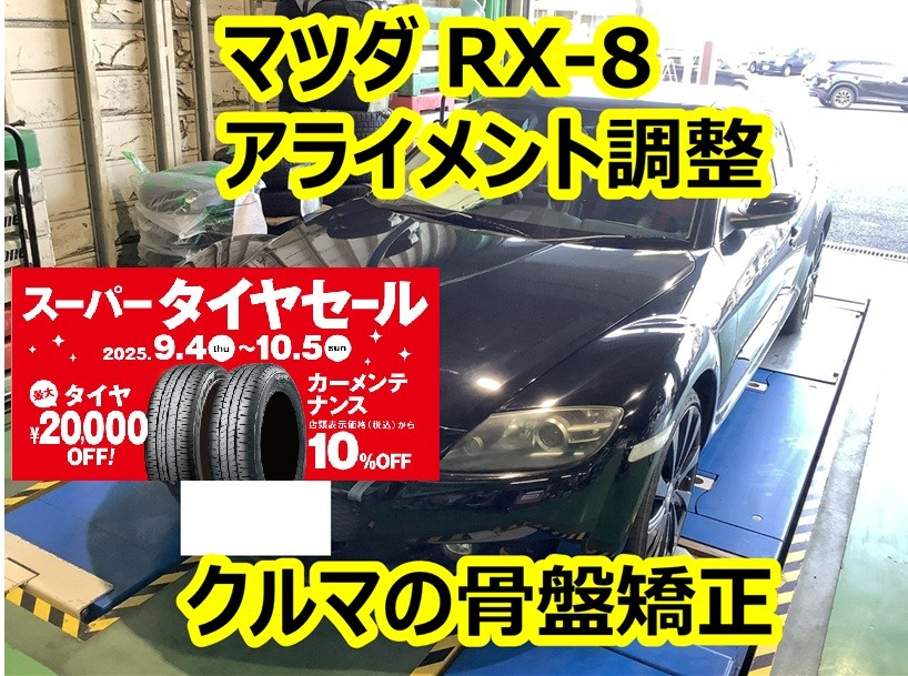 マツダ RX8 アライメント調整 クルマの骨盤矯正 タイヤ長持ち