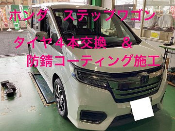 ホンダ ステップワゴン タイヤ4本交換&防錆コーティング施工