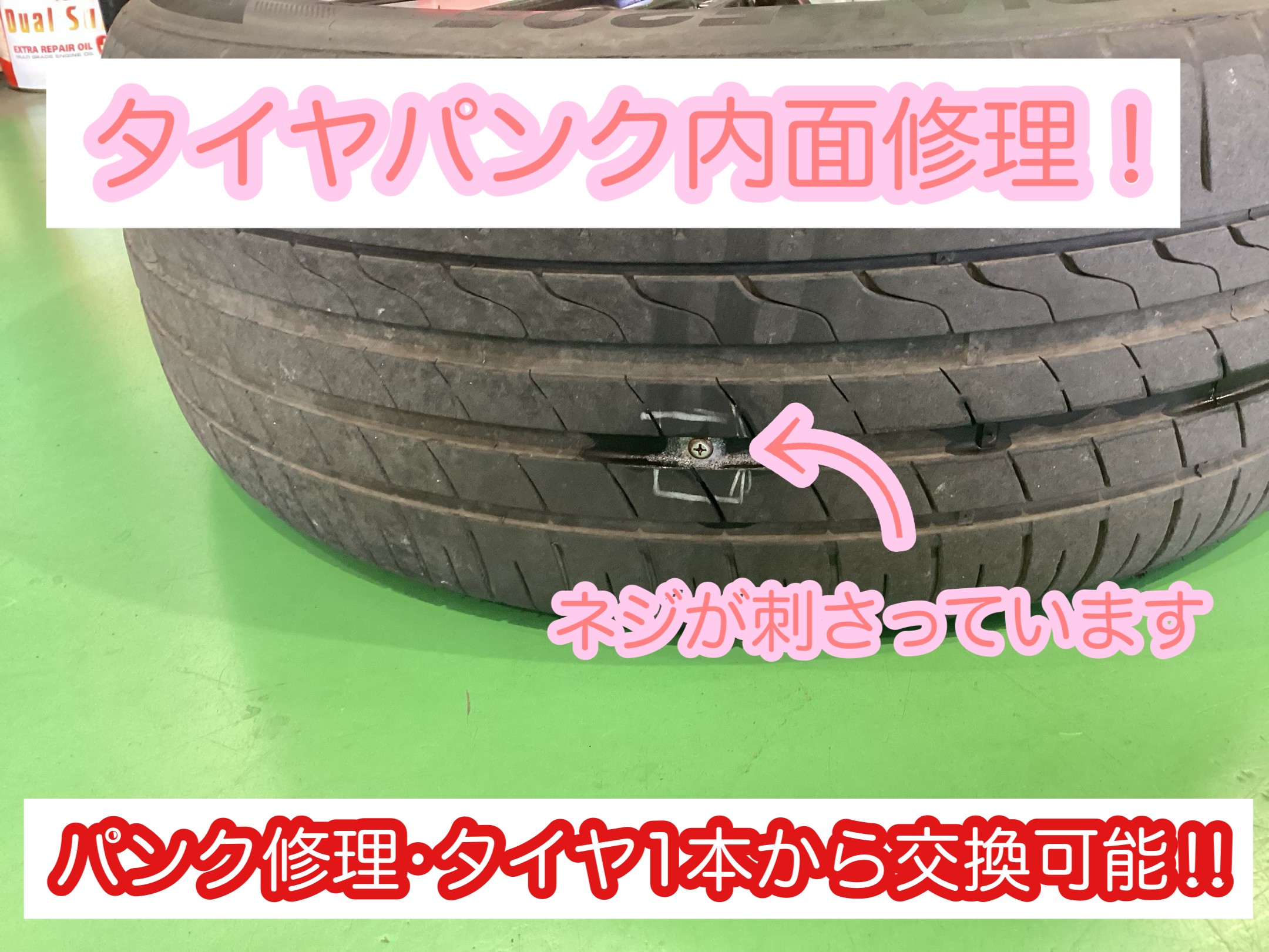 パンク内面修理 パンクで困ったらタイヤ館にお任せ! タイヤ1本から交換可能