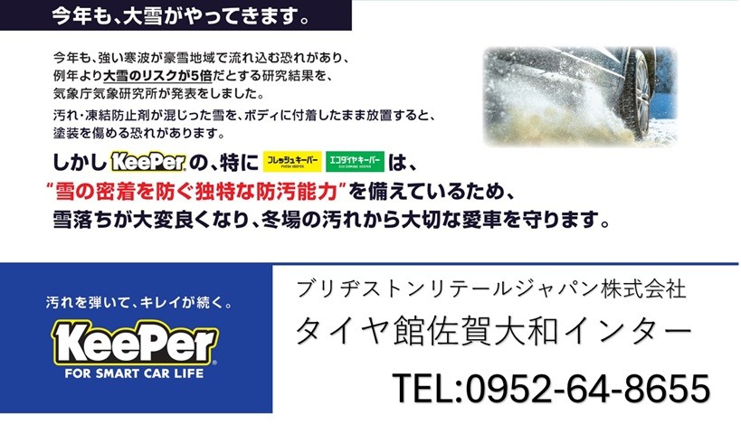 ぜひ、当店KeePer PRO SHOPタイヤ館佐賀大和インターにお任せくださいませ。