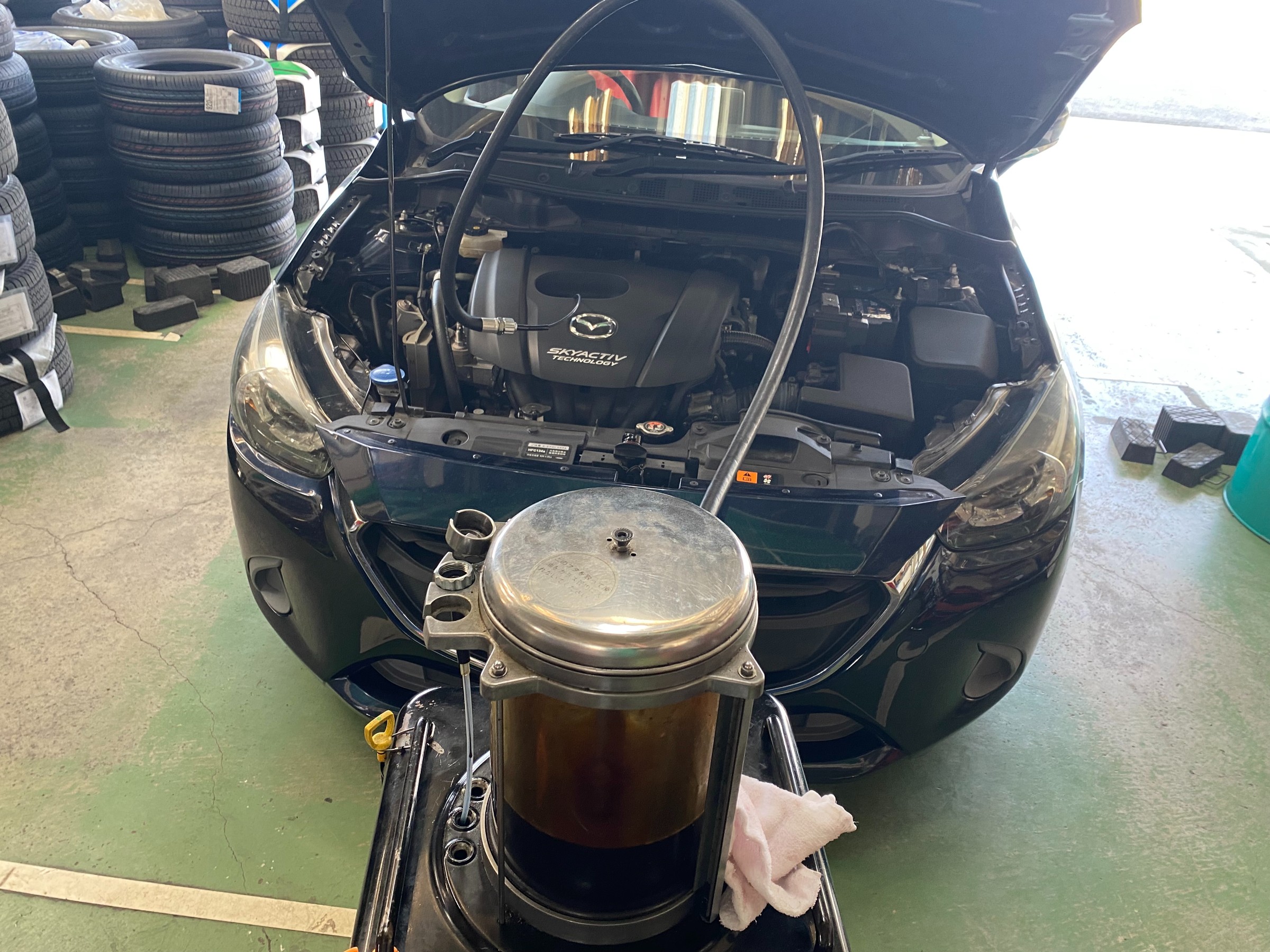 さて本日はマツダ・デミオのエンジンオイル交換をご紹介します。