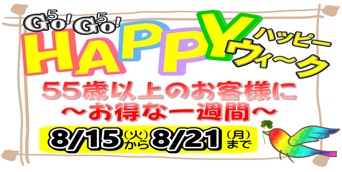 8/15(火)~8/21(月)まで HAPPYウィーク開催します^^