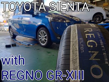 こんにちは。 タイヤ館西条ホームページをご覧いただき、誠にありがとうございます。 本日は、トヨタ シエンタにタイヤ交換実施のご紹介です。 今回装着しますタイヤは、ブリヂストンタイヤ、コンフォートタイヤのフラッグシップ“レグノGR-XIII(クロススリー)”です! これまで装着されていたタイ...