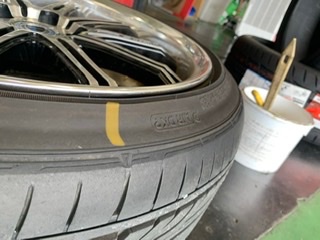 想像ですが、以前のオーナーさんが「空気圧不足」や、いわゆる「鬼キャンバー」状態などで、タイヤに無理な負担を掛けて走行したのかもしれません、