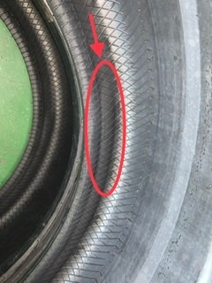 タイヤのサイドが逆反りに変形してます!内部構造が破損するとこの症状が出ます、