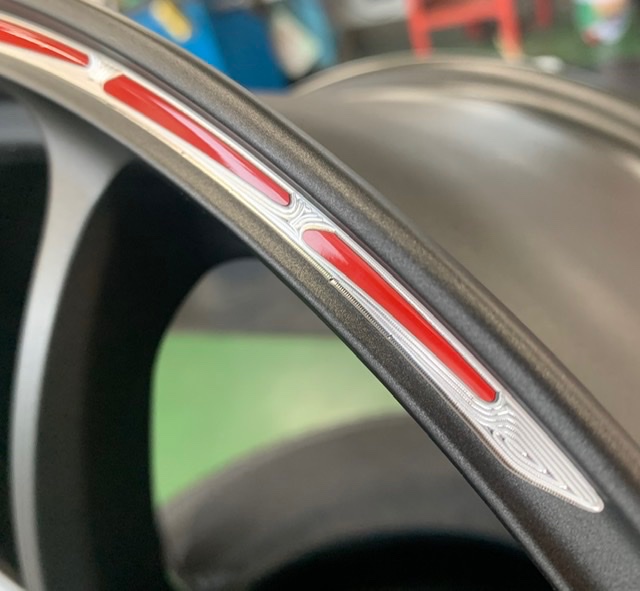 他のホイールならプリントされたステッカーを貼って終わるところですよ!