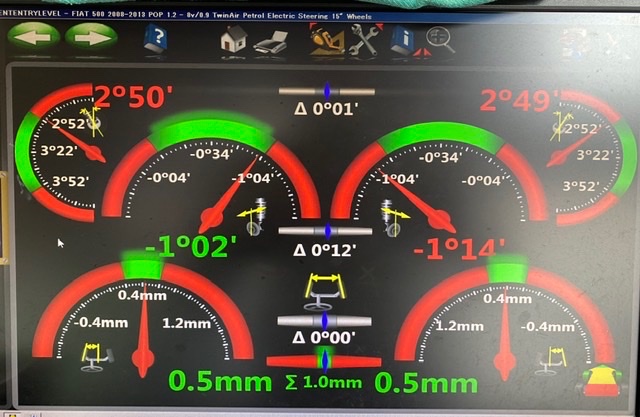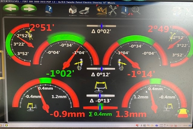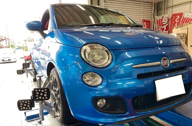 フィアット500S(31209)アライメント調整・ナンバー灯交換