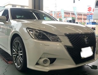 こちらのクラウンは、運転席寄りに取り付けると視界の確保が出来ないので、助手席側に取り付けます