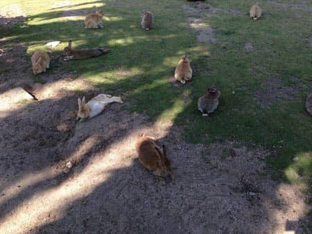 竹原市からすぐの忠海港から船で約15分、着いた途端に野生のウサギ達が出迎えてくれます(≧∇≦)