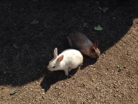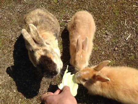 向かうは休暇村の建物なのですが、普通に歩けば15分ほどで着くのですが、次々と出会うウサギに餌をあげながら歩くのでちっとも進まない(笑)
