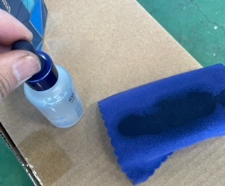 液剤と、塗り込み用ブロック、クロスがセット