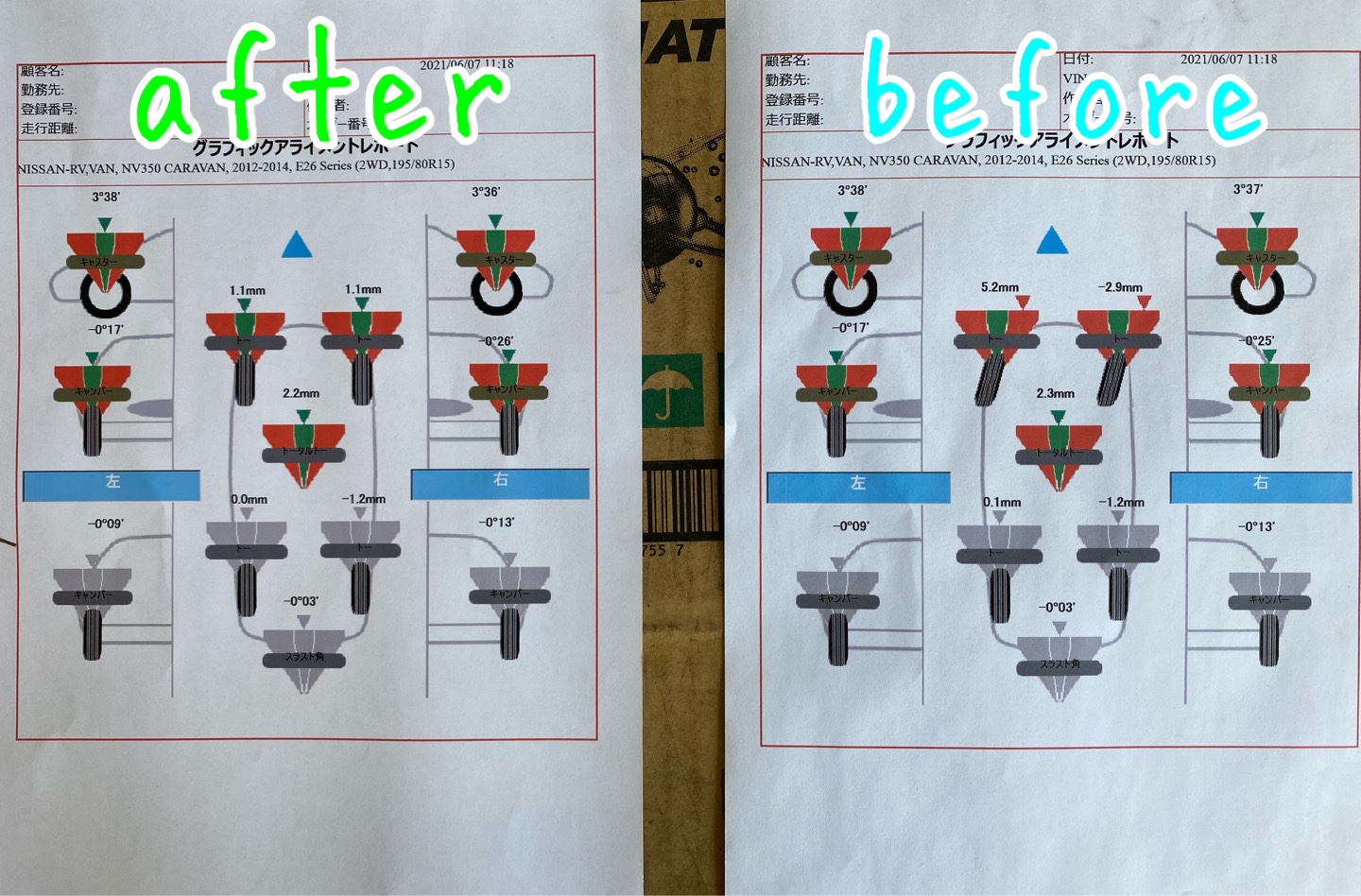 NV350キャラバンにアライメント調整実施
