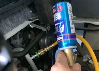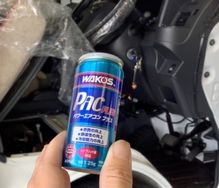 エンジンをかけて、エアコンを起動して、エアコンに添加剤を接続、後はフリフリ♪