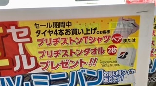 先着でブリヂストンTシャツ又はタオルをペアでプレゼント中