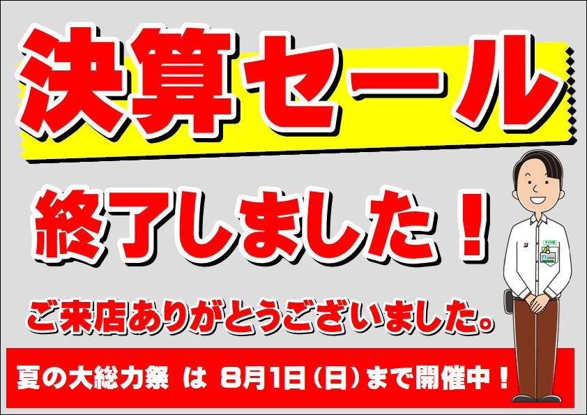 決算セールご利用ありがとうございまいた!