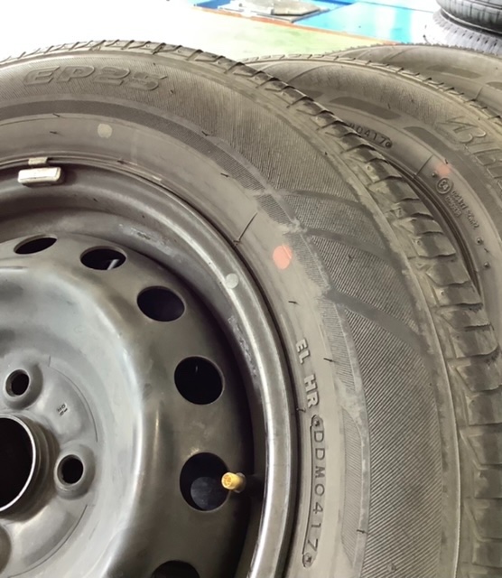 作業前の標準装着タイヤ、エコピアEP25から交換、すり減ってひび割れも始まってます、