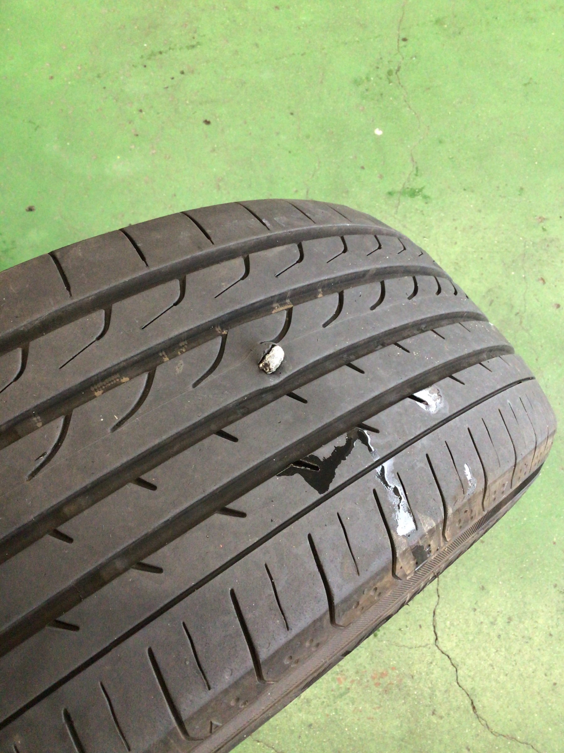 パンクの原因はまさかまさかの石が刺さってしまってました!