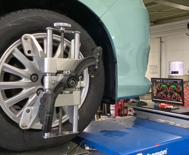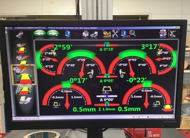 左前輪が、基準値の角度よりも大きく内股に^^;