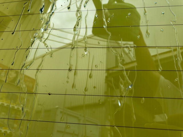 ①ガラス表面の汚れを洗浄し大きなゴミ・土などを取り除きます。