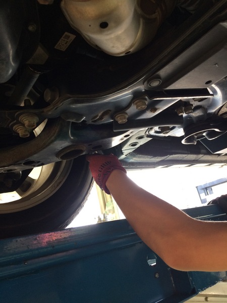 次に各タイヤ毎の角度を測定し、基準値からズレている場所を調整、新車時の状態に戻します。