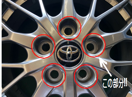 トヨタ車などの純正アルミはテーパー形状のナットでなく、筒型のナットを使用しています。