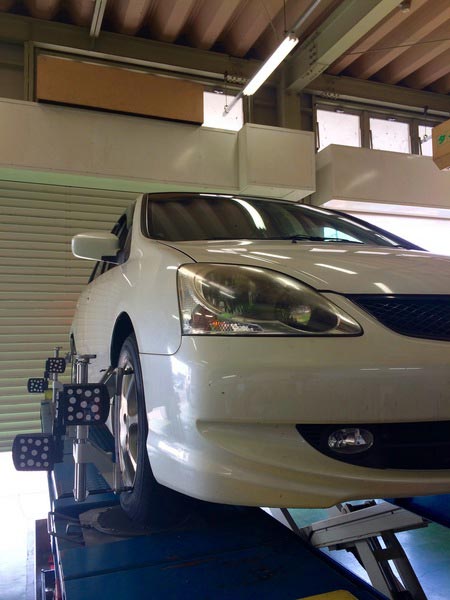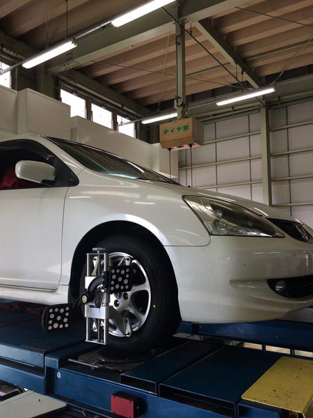 お客様も、「結構長く乗ってるし一度診てもらおうかな」とアライメント作業になりました。