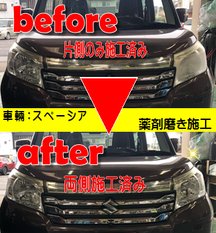 先日WEB予約にてヘッドライトコーティング作業を頂きました。
