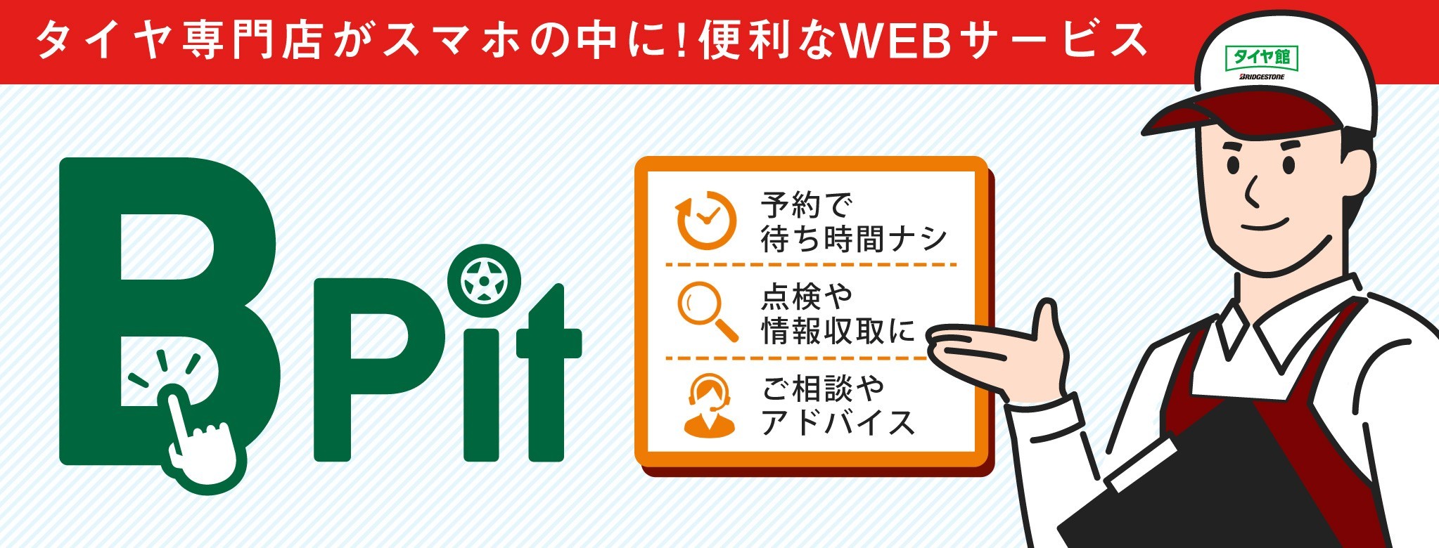 タイヤ付替え オイル交換WEBから予約できます ポスト 2023年3月3日 タイヤ館 西条店 ホームページを閲覧いただき誠にありがとうございます! タイヤ館が提供する カンタン便利な タイヤ交換・カーメンテナンス・点検 などの WEBの予約サービス B-Pit (ビーピット) ●エンジン・オイル交換 ●WEBから予約受付中 WEB予約はここをクリック