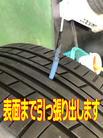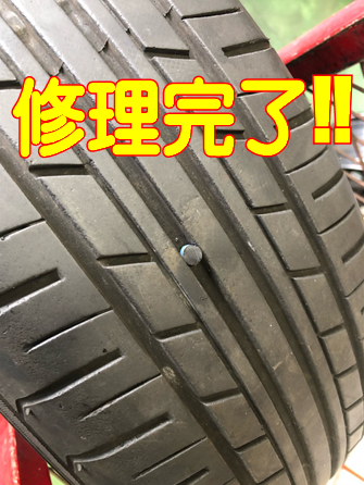 今回のパンクはセンターに釘がささり、まだエアーが漏れていない状態でした。