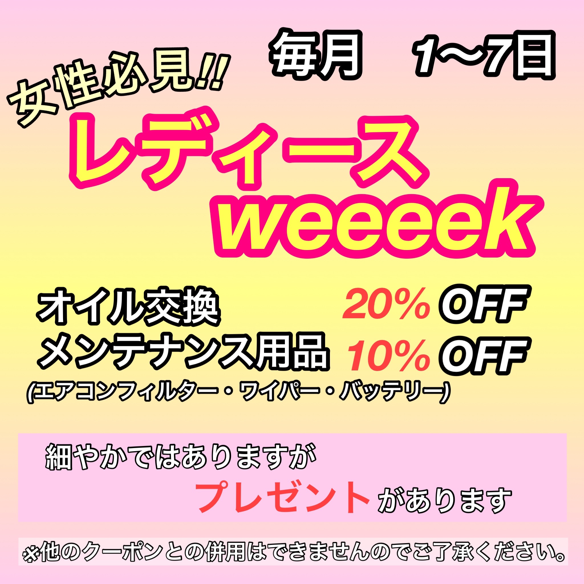 レディースウィーク(毎月:1日〜7日)