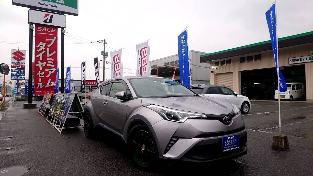 本日は昨日のNワゴンに追加してC-HR+グラムライツを展示しています。