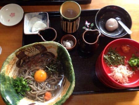 この日の為に朝ごはんを抜いてきた僕は、冷たい蕎麦と暖かい蕎麦が両方楽しめるセットを注文!