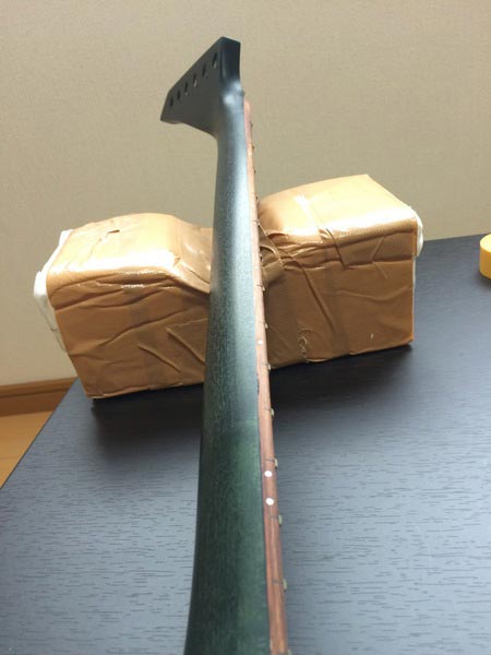 完全に乾燥したらネックに貼ってましたマスキングテープを剥がします。(剥がすタイミングは色々あるみたいですが…)