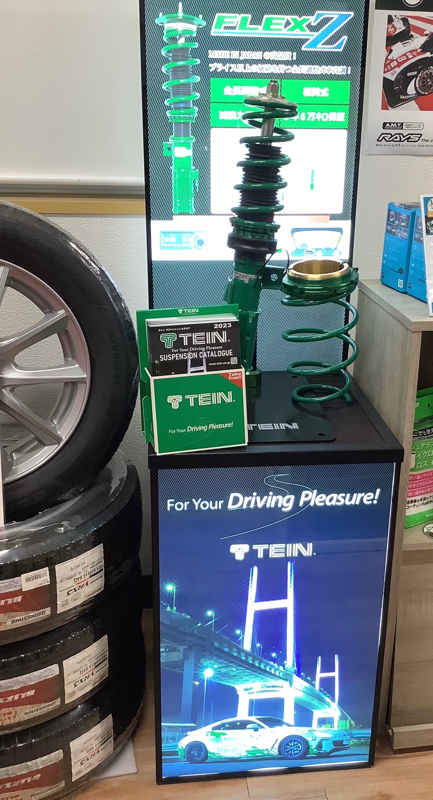 今日は、サスペンションブランドのTEINさんが県外からこちらの店舗まで展示のリフレッシュや、最新のカタログを補充などの為にご来店いただきました!
