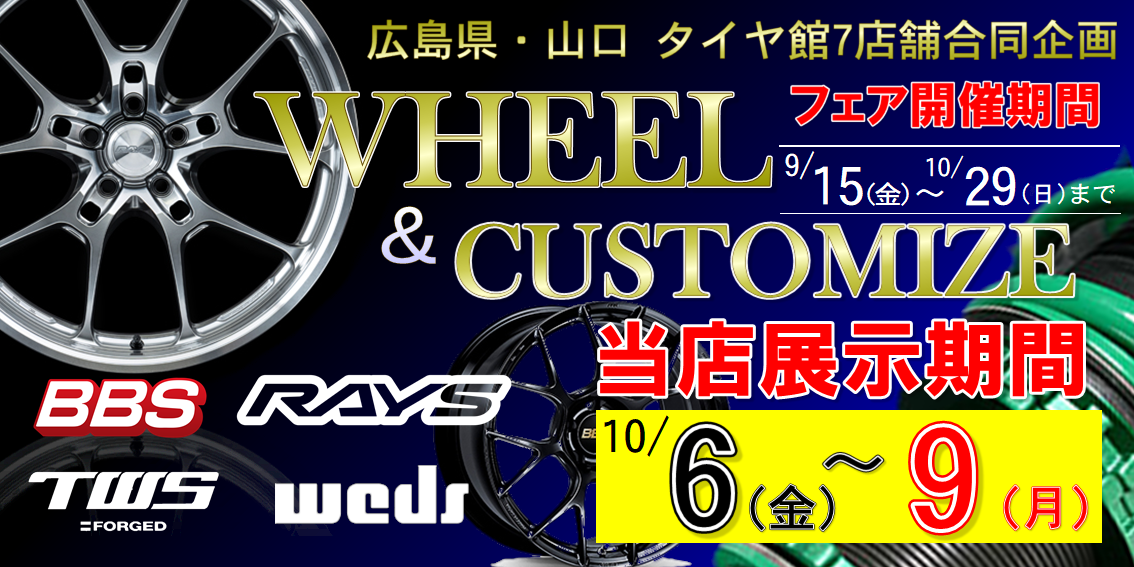 期間中はBBS・RAYS・TWS・Weds・WORKなど人気ブランドのホイールを多数展示しております。