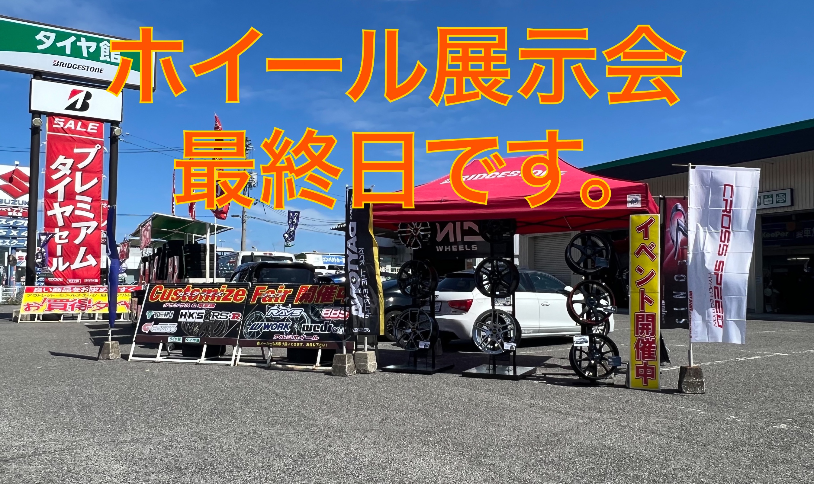 ホイール展示会、最終日です。この機会をお見逃しなく