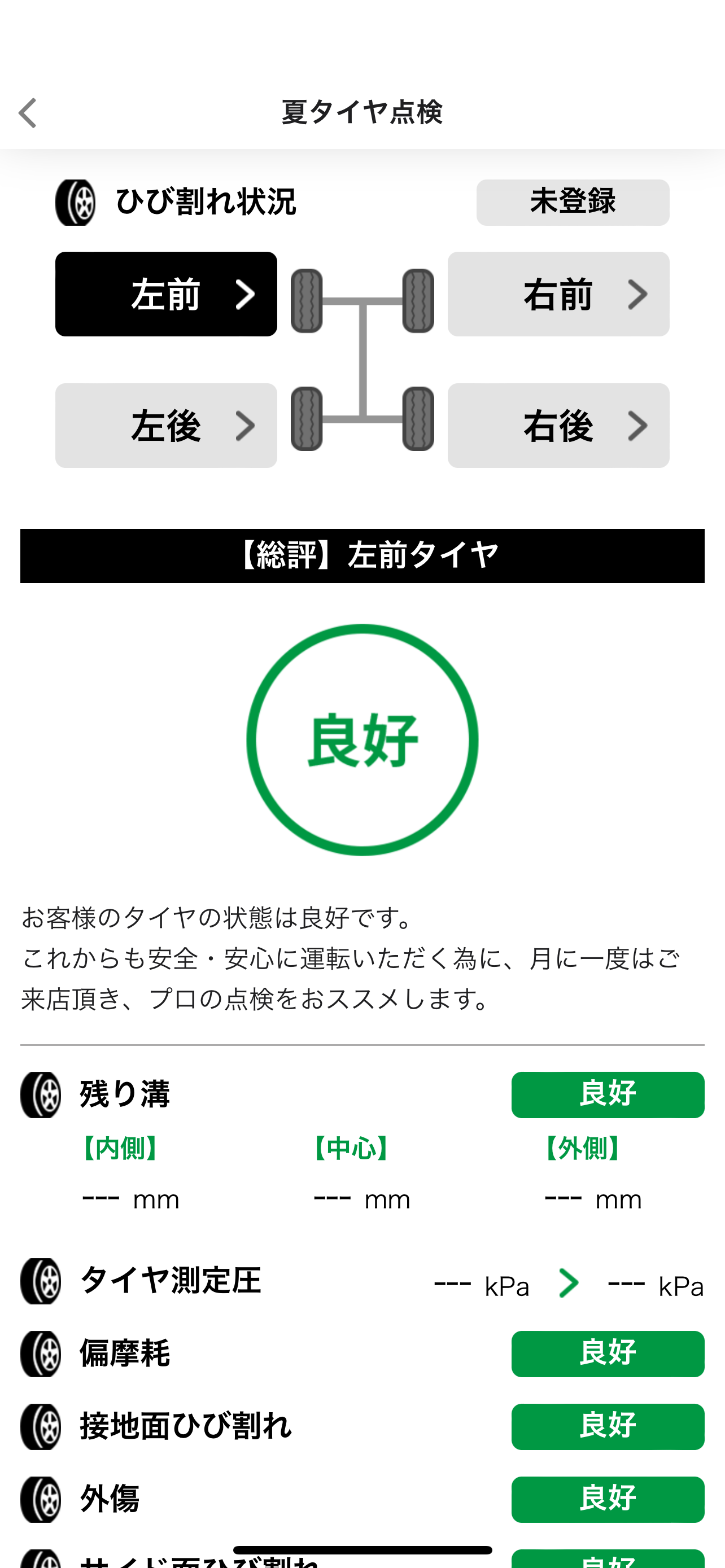 今お客様がお使いのタイヤの状態を