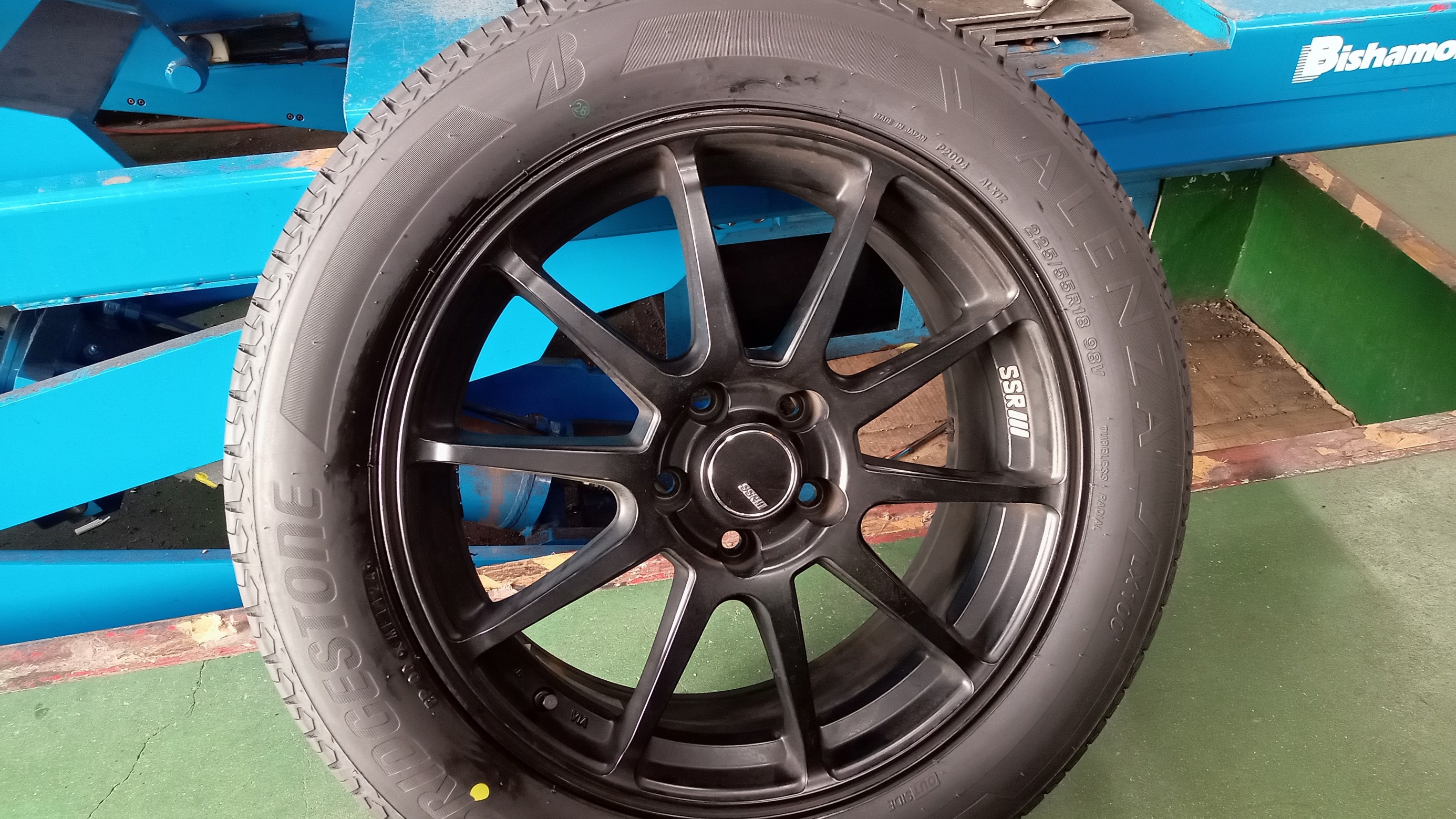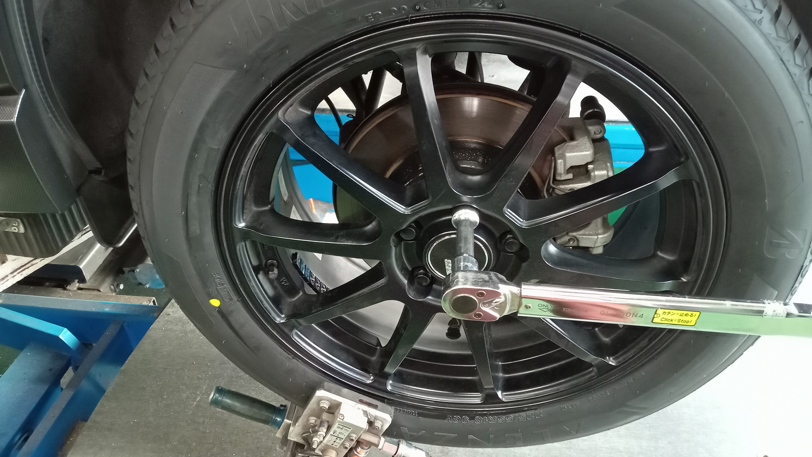 あらかじめ、組付け準備を済ませたタイヤ・ホイールを、