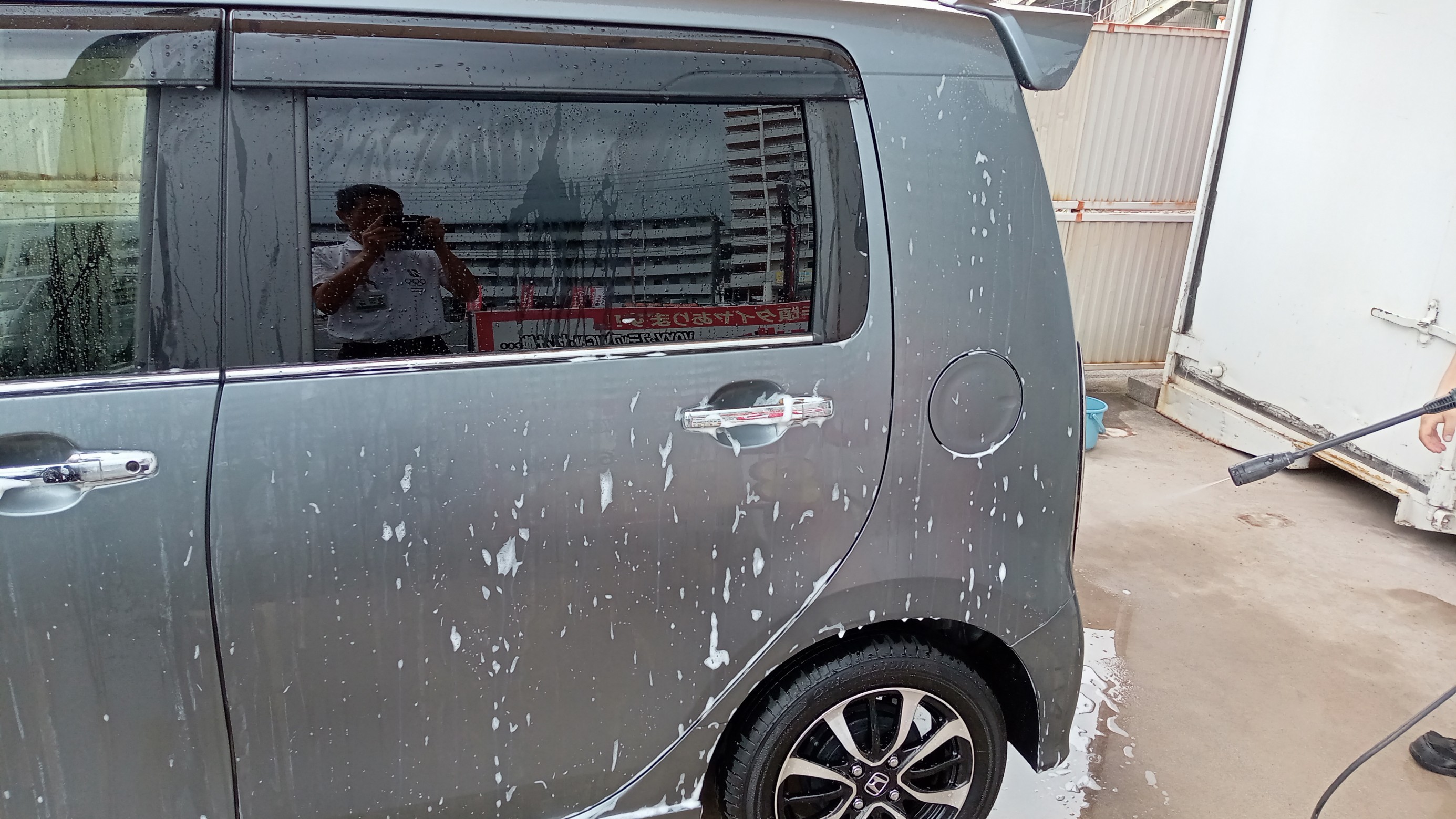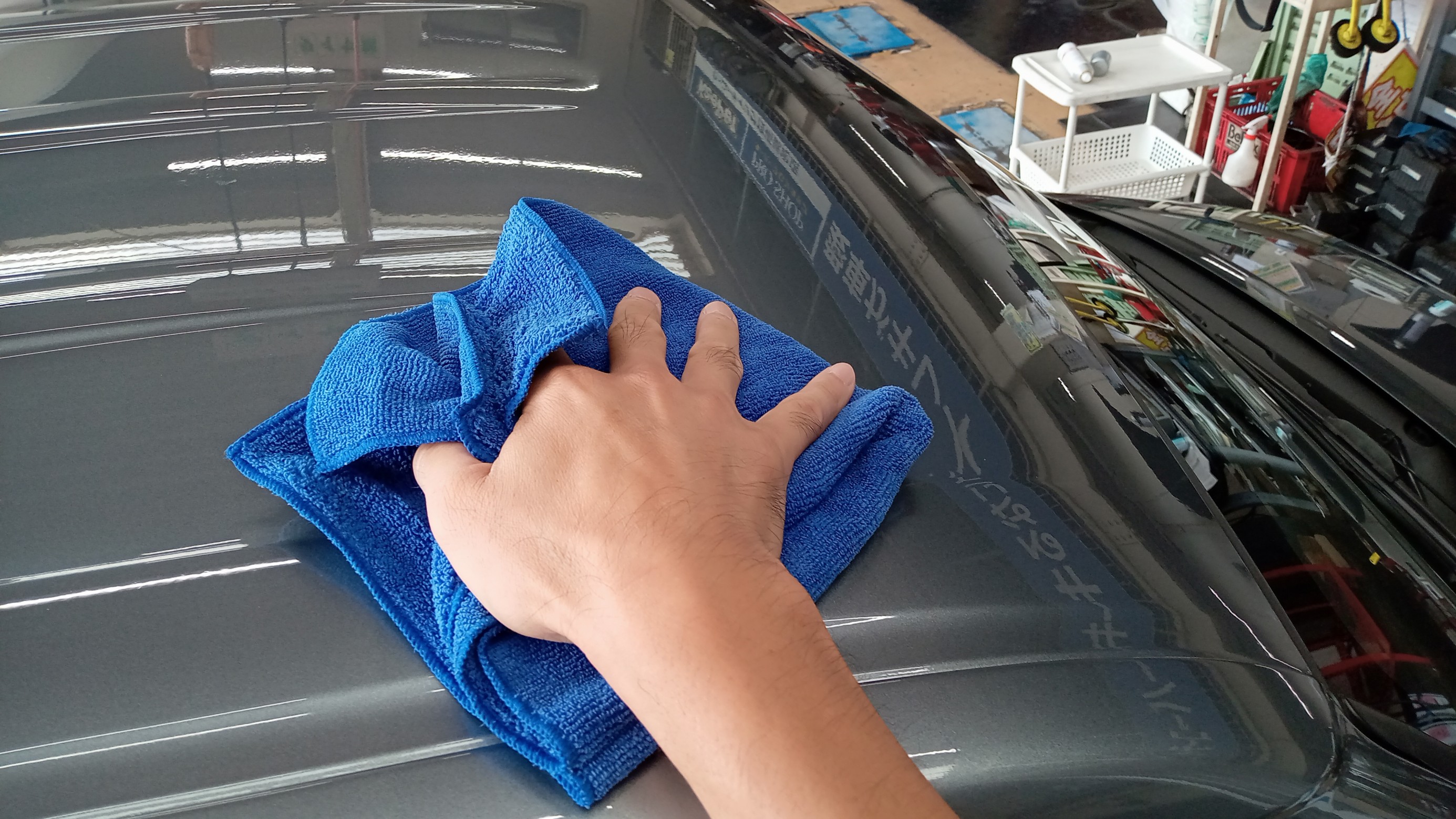 爆ツヤを施工したら、さらに洗車していきます。