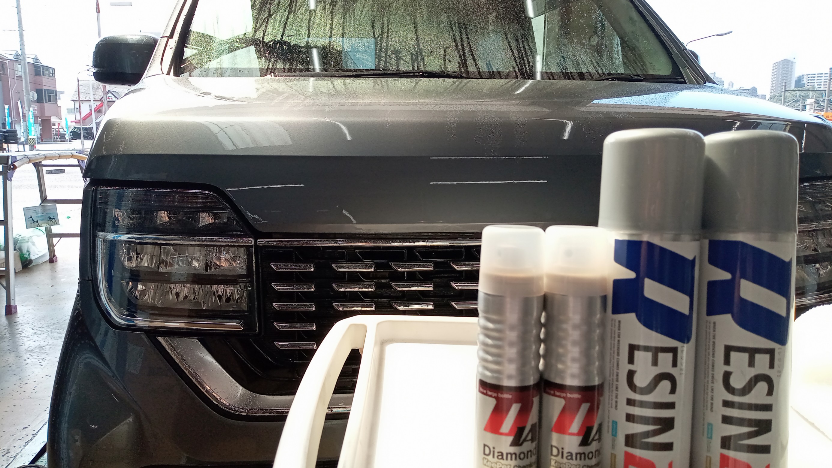 車全体の水気を取り、レジンの塗布と拭き上げ。