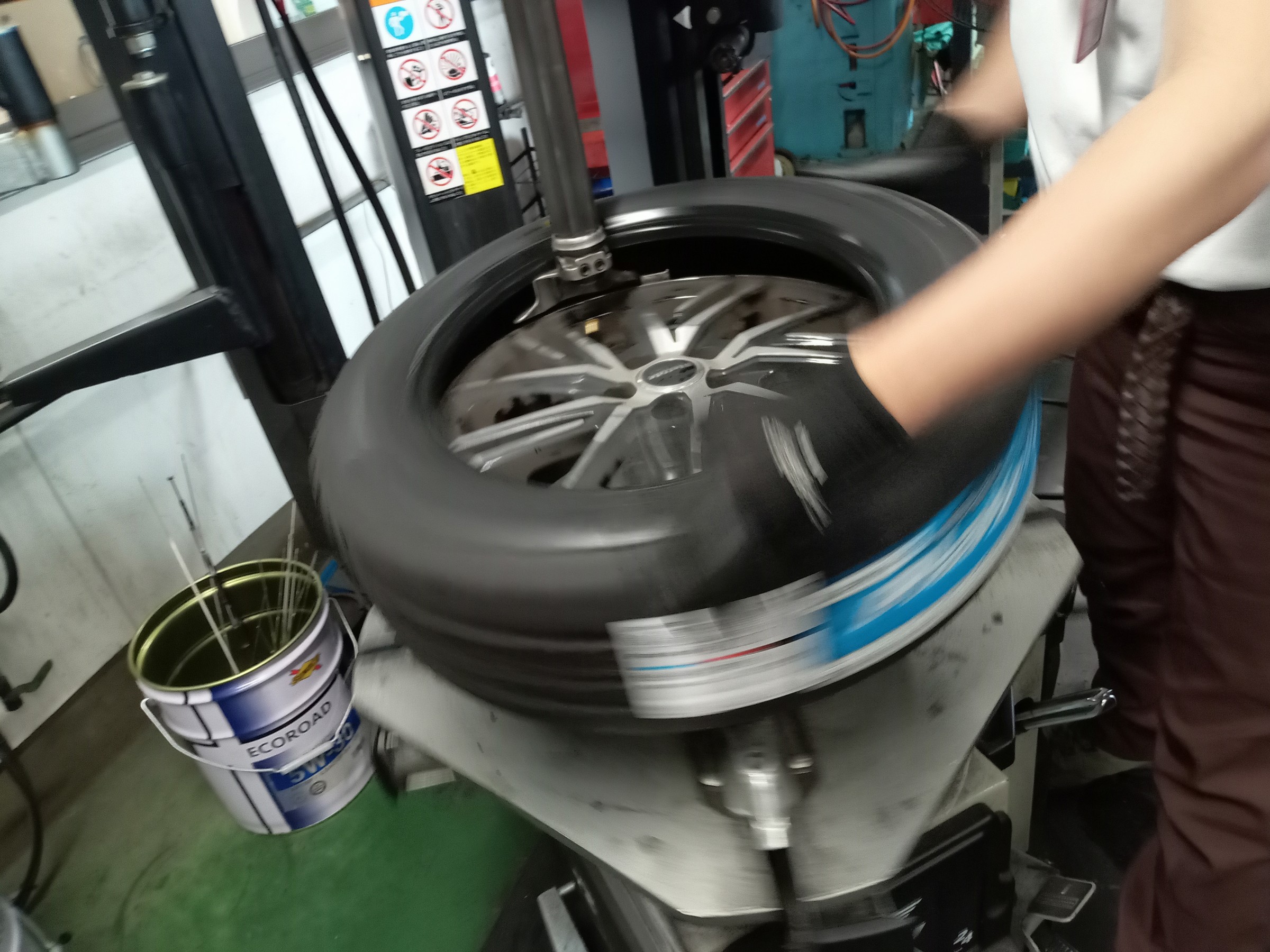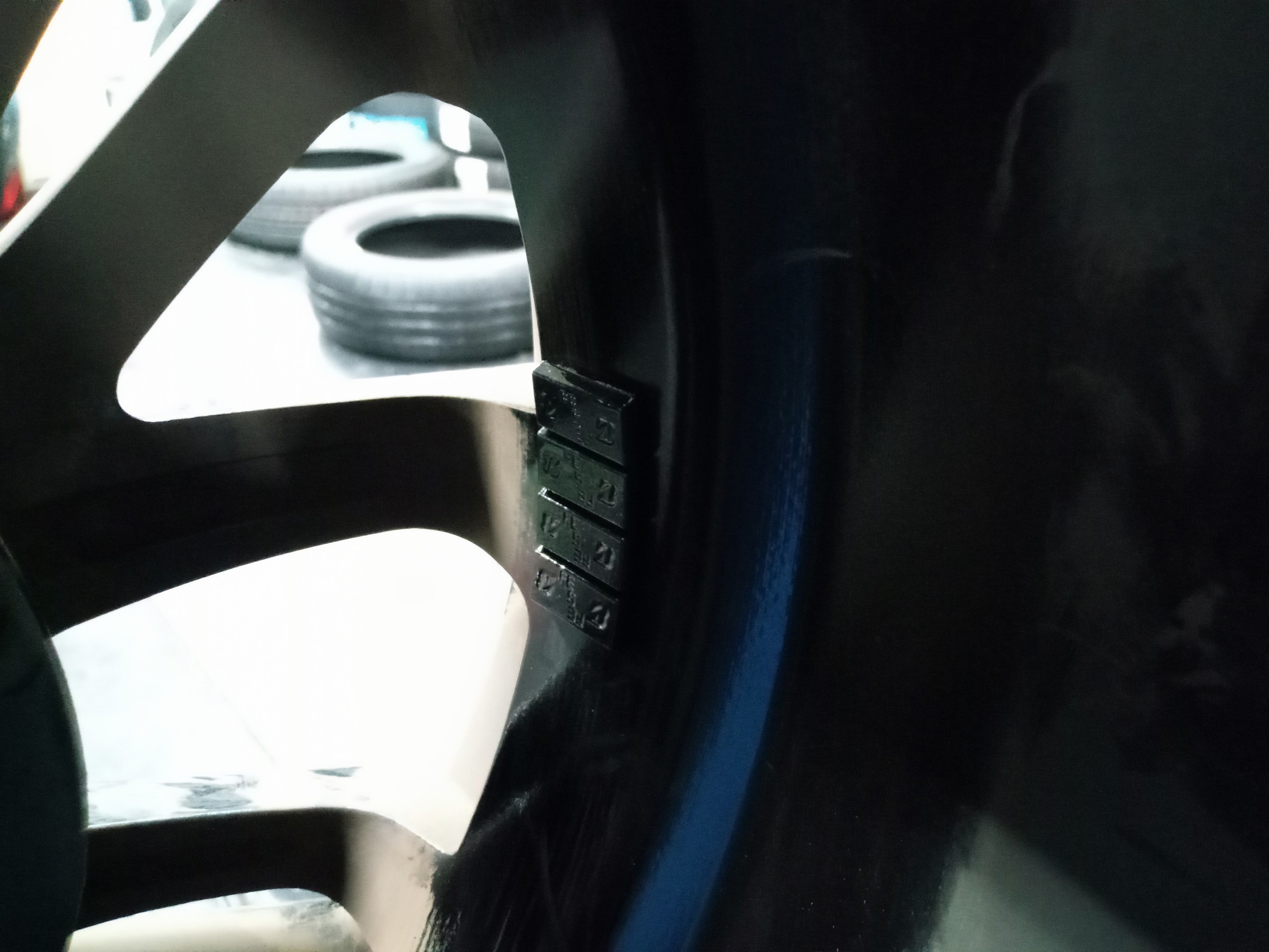 内側が黒いアルミホイールなので、黒のバランスウエイトを貼り付けて、バランス調整実施!